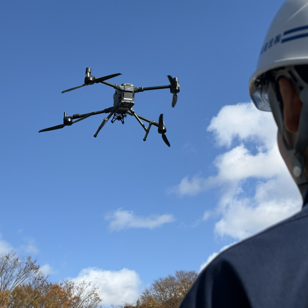 また、作業エリアも従来の地上での測量から、UAV(ドローン)の普及により、空から測量をする時代へと移り変わってきました。これらの機器の進化により、作業エリアの拡大と作業員の技術の向上に加え、危険な場所への立ち入りが減少したことによる技術者の安全面においても十分な効果を得られています。災害発生時の状況把握や早期復旧・復興に大いに役立っています。