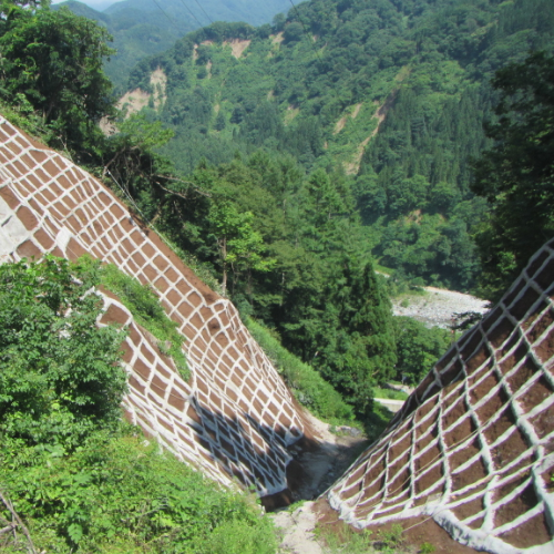 荒廃化する自然斜面や、人工的に切土された法面を植物によって緑豊かにする工法です。