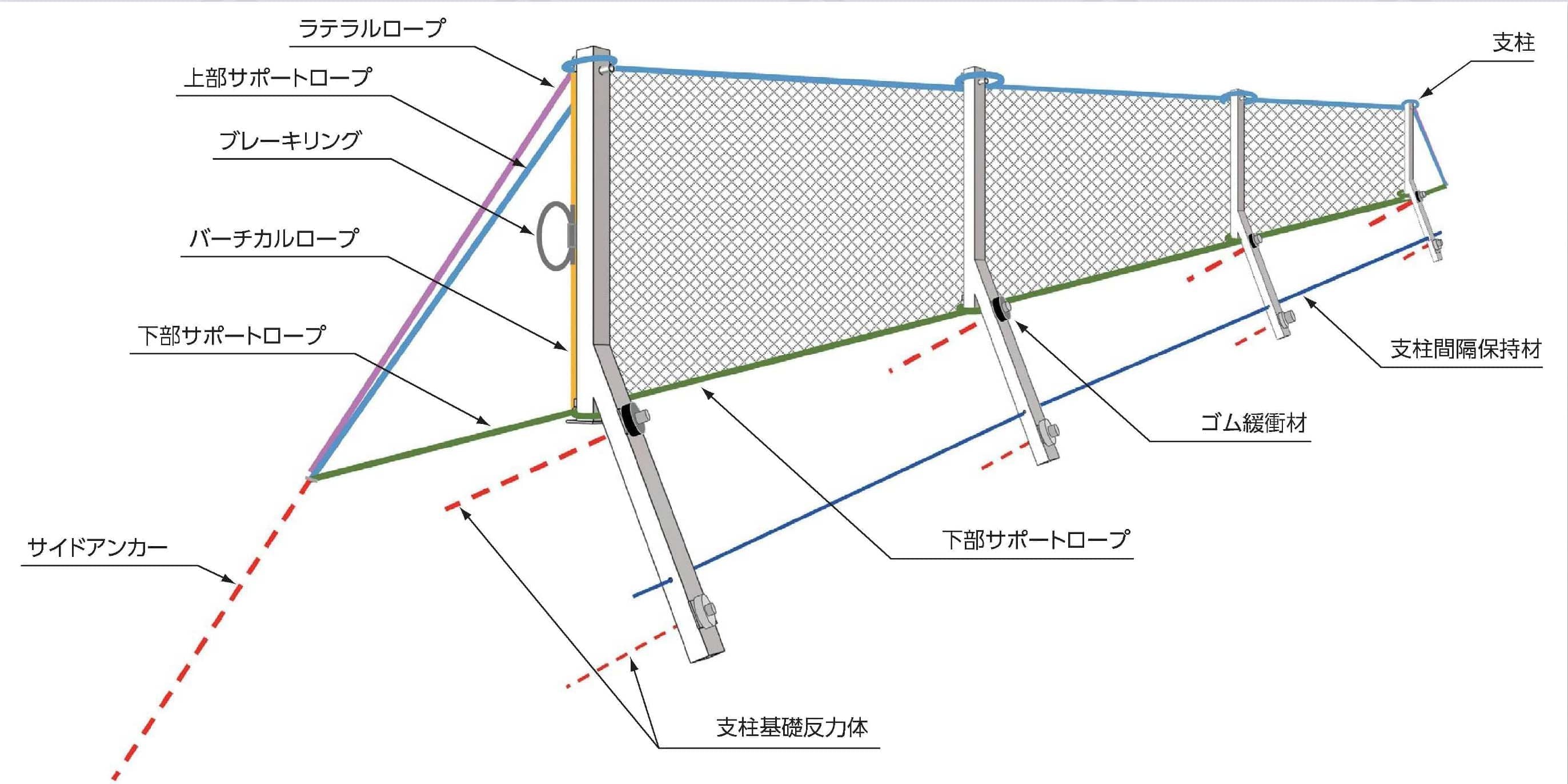 ・異なる線径とメッシュ寸法のTECCO®ネットを重ね合わせたネット二重構造の採用により、落石への耐貫通性能が向上