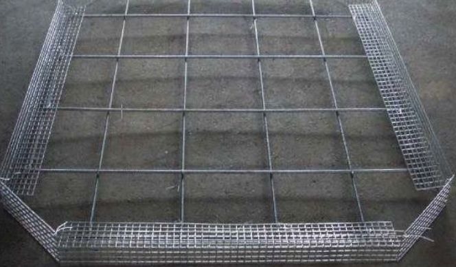 現場に搬入後T字金網を立て、四隅にフラット金網を結束線によって取り付けます。なお現場斜面の凸凹の状況により、枠長の斜面設置許容誤算を±20㎜以下とします。